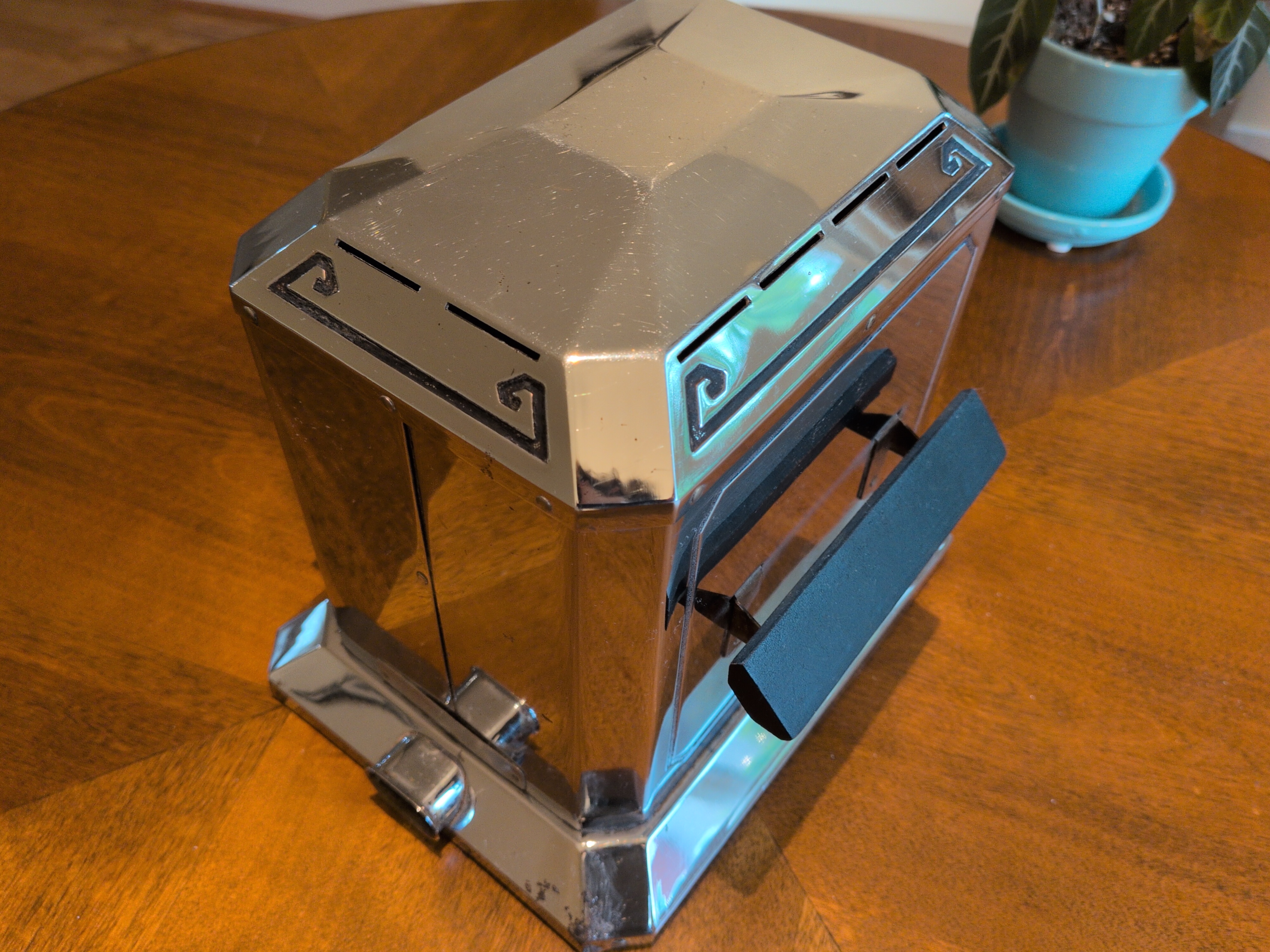 Coleman Model 1 It’s hard to find much information about this toaster. I believe it’s related to that Coleman. It certainly is art deco chic!