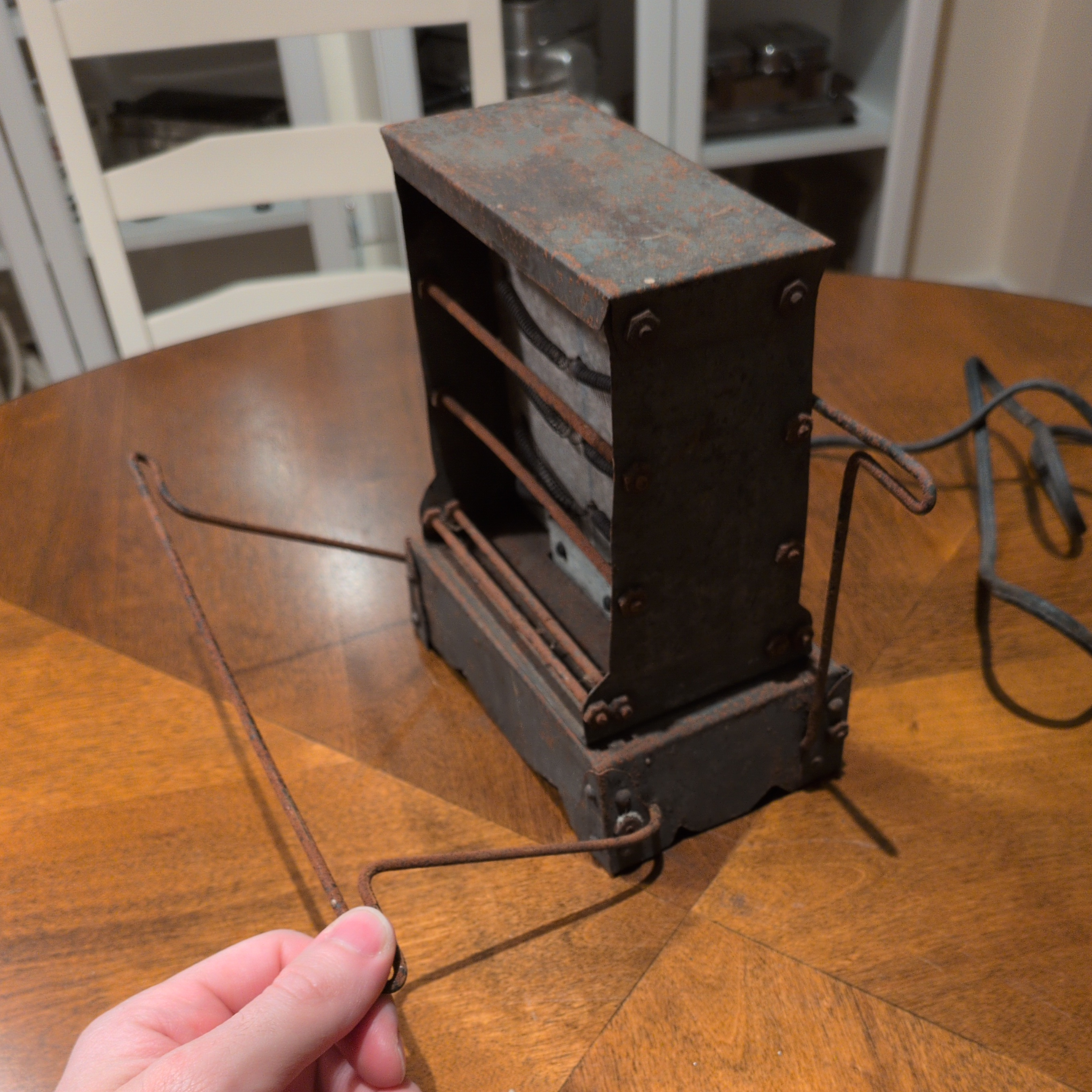 This toaster was either a very rough, inexact unit straight from the manufacturer, and was hobbled along by the owner in ways I’ll outline below, or this toaster was made by hand.