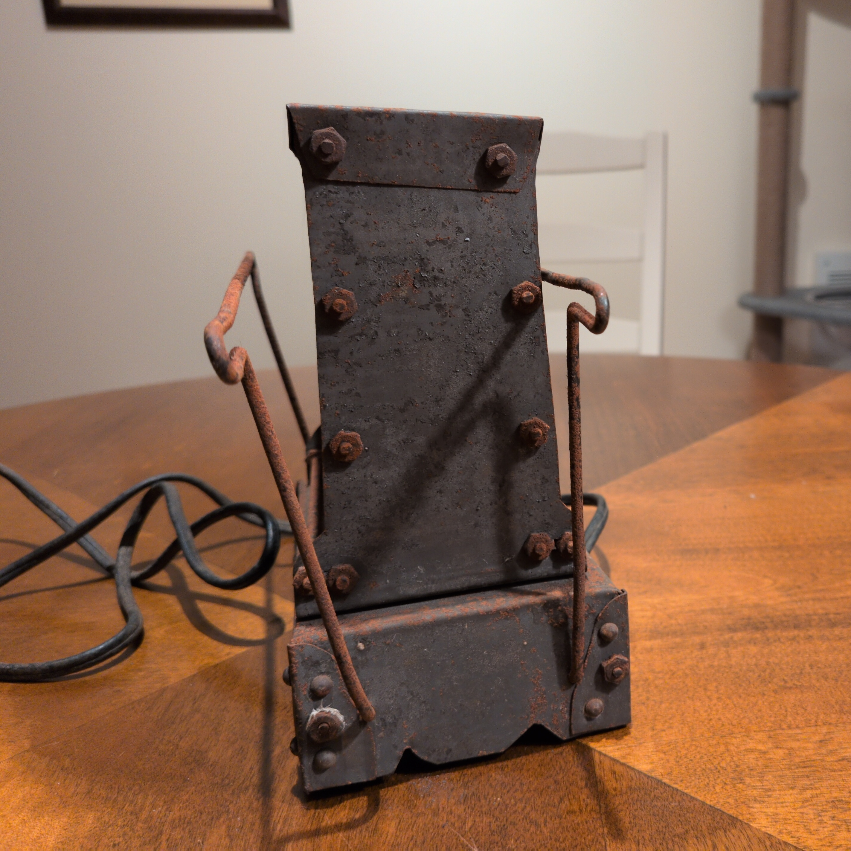 There are SO many things I love about toasters, but my absolute favorite is that occasionally you’ll come across specimens that were made in small volumes, like the Glorette, or perhaps one can find a particularly spartan toaster, like the Steelcraft, but very seldom can one point to an entire hand made specimen like this one potentially is. I also found it at a local antique store to boot!