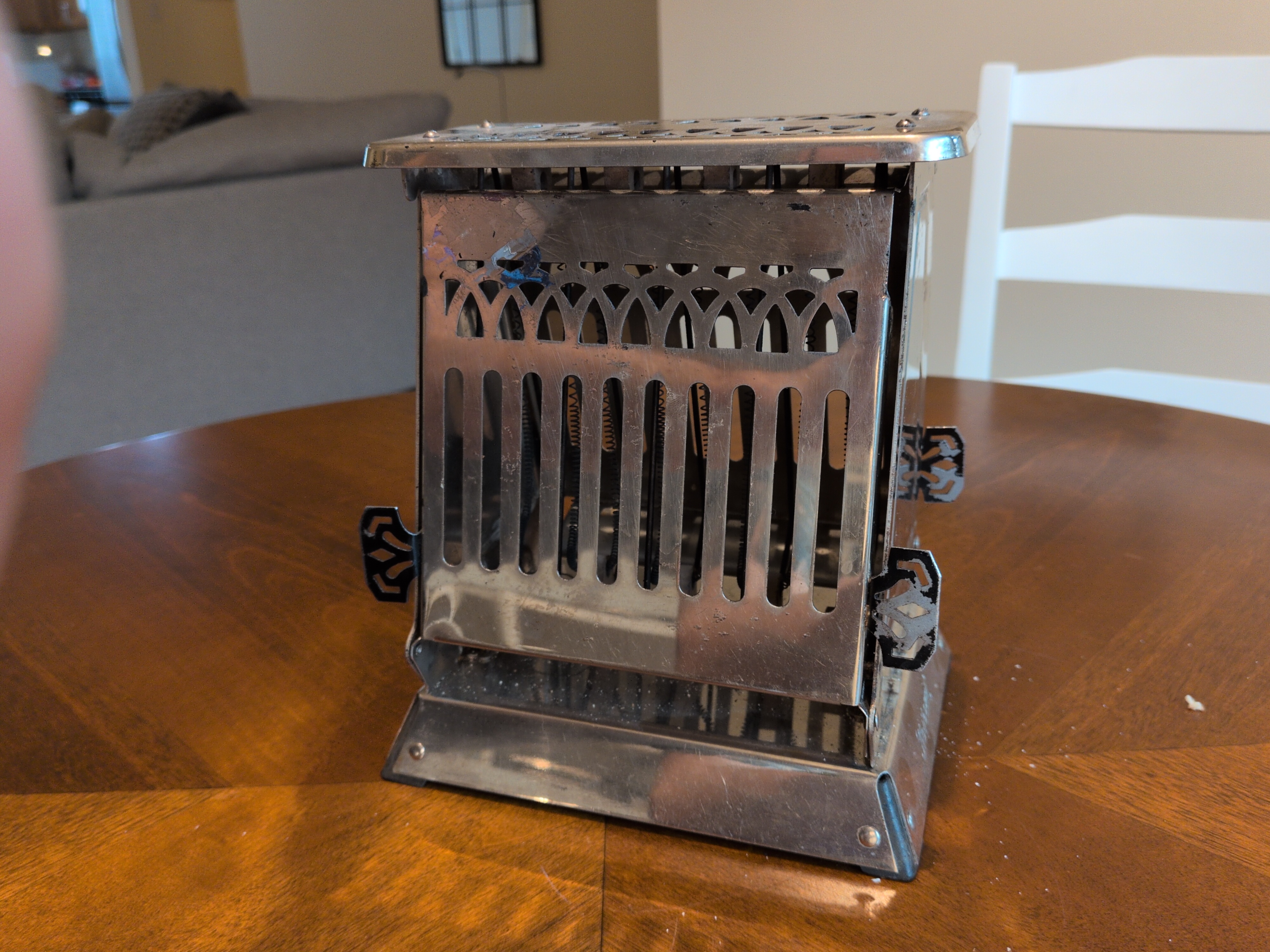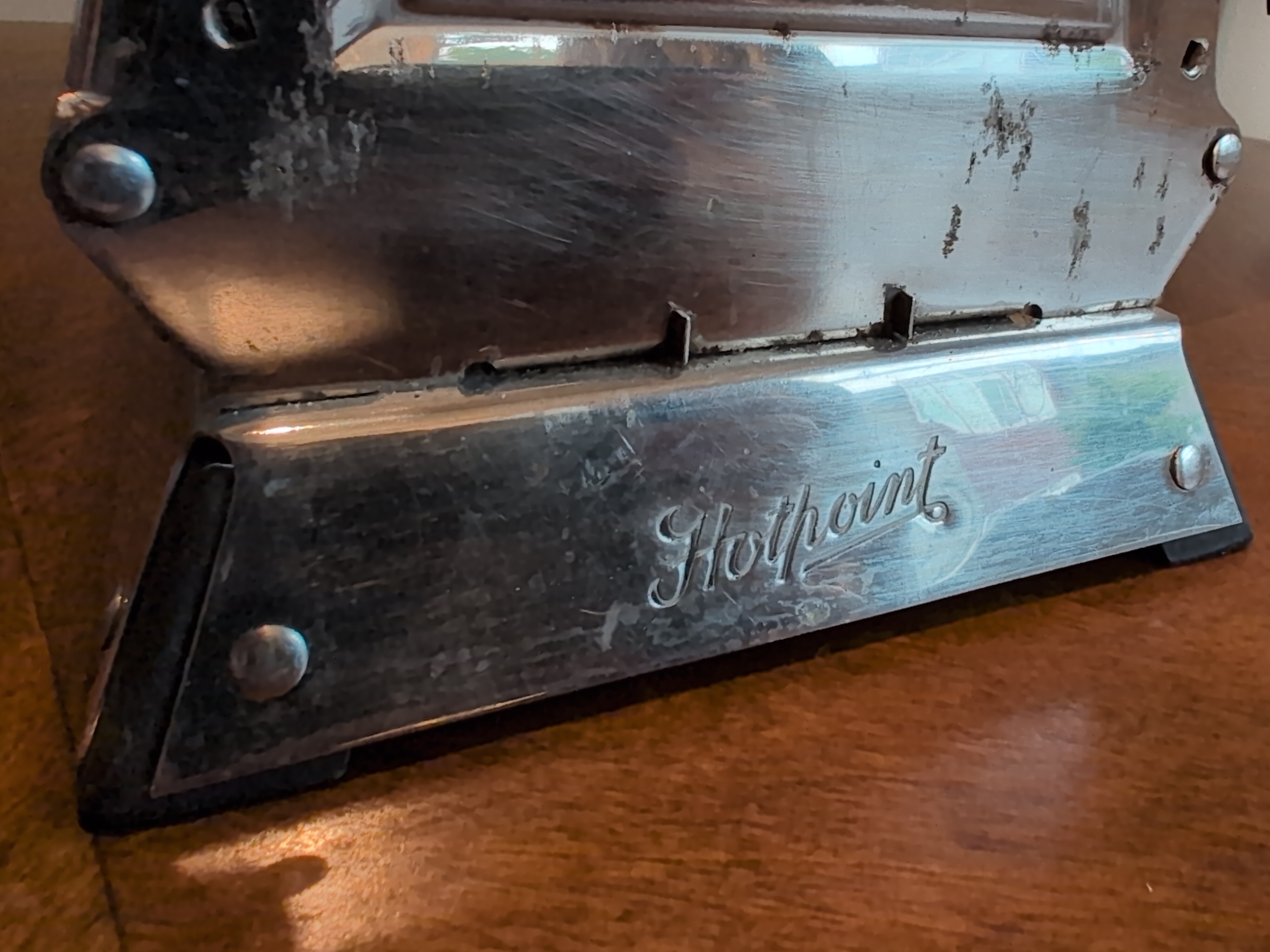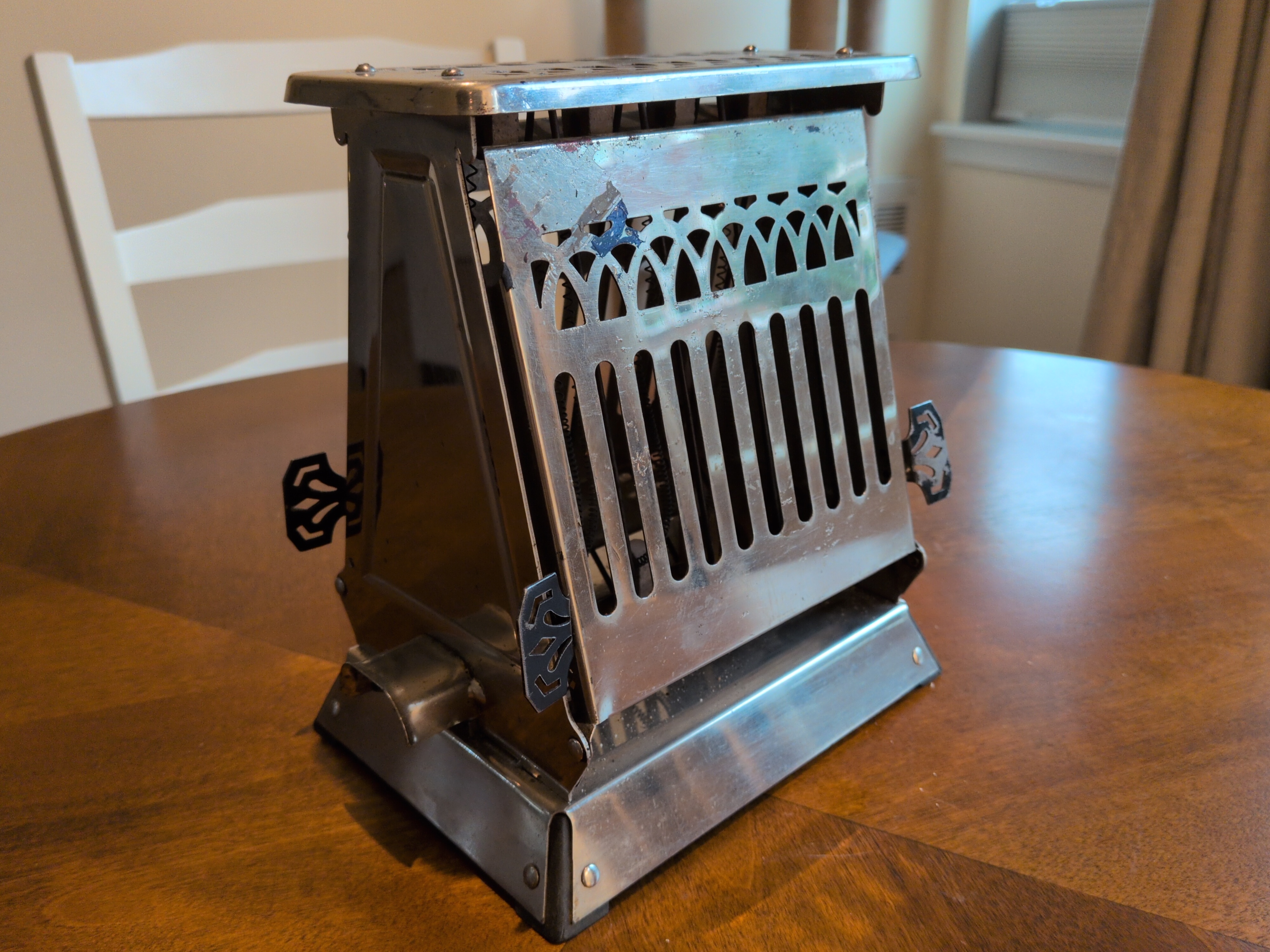 Hotpoint Turnover Brand: Hotpoint | Style: Flapper | Decade: 1920s | Year: 1920 I love this angular and abrupt design. Early Hotpoints may be simple, but they are beautiful, and hey, the wound nichrome elements means it’s still in operation 100 years on.