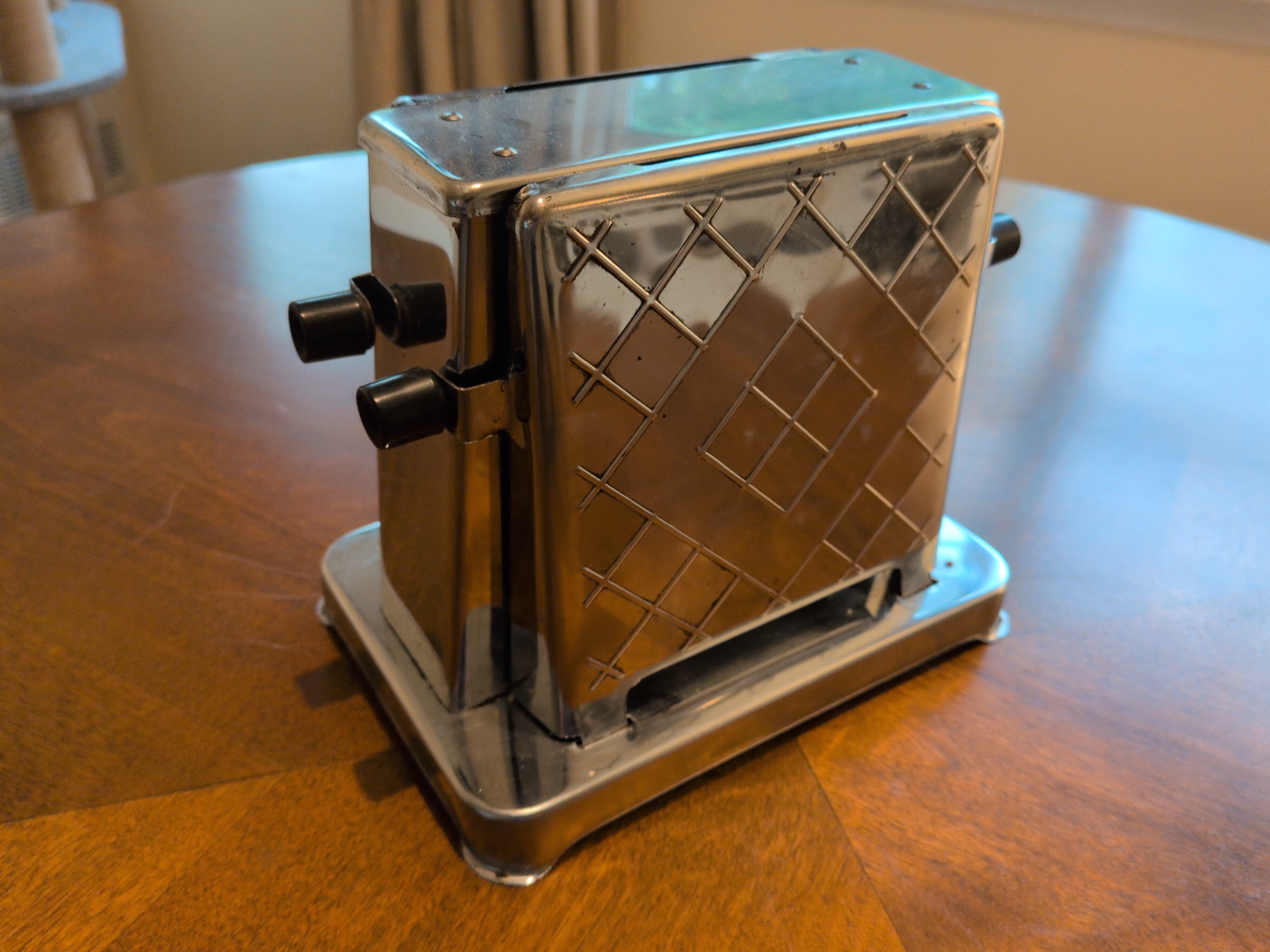 Toastess 202 Brand: Toastess | Style: Flapper | Decade: 1940s | Year: 1940 This is my first toaster. Gifted to me by my dad in 2016. Thanks Dad!