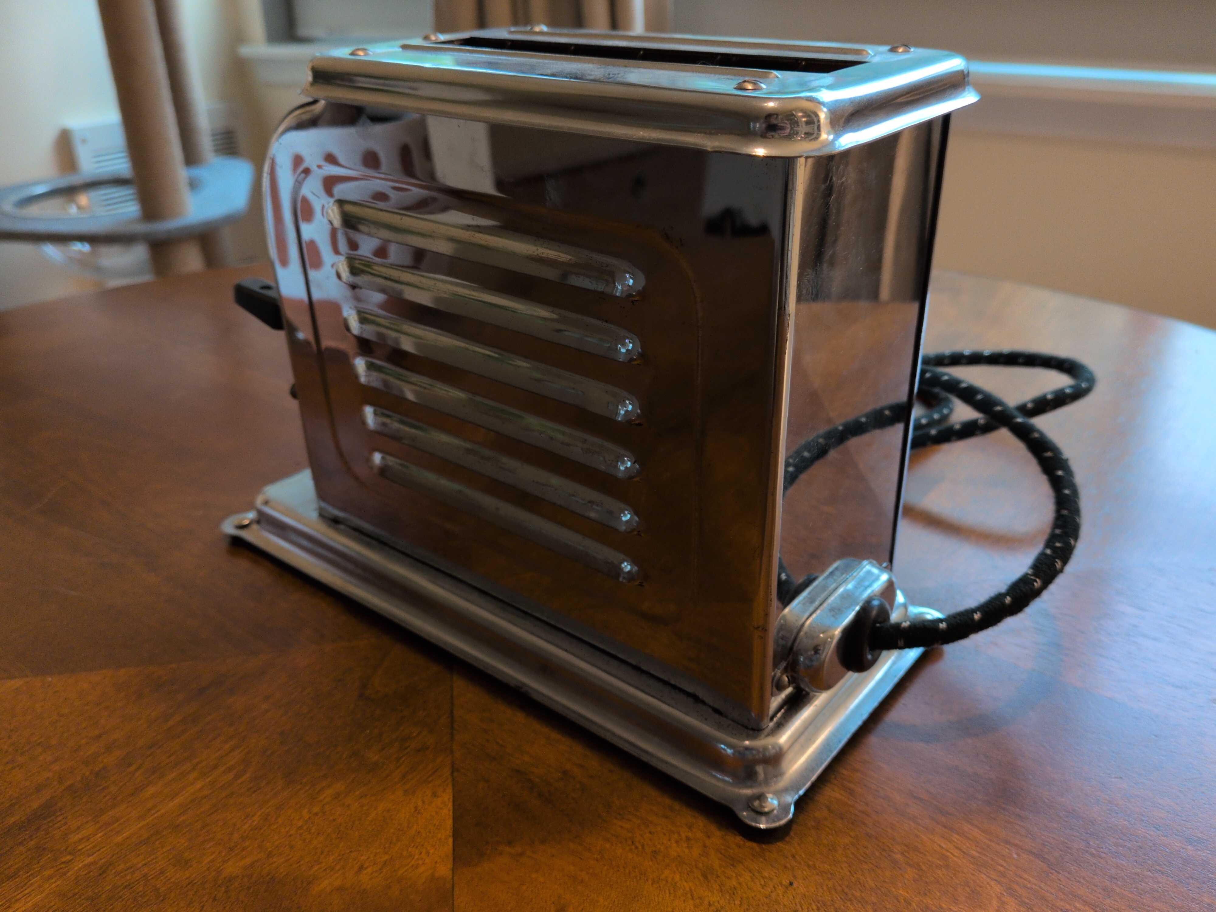 This is the first consumer-available popup toasters. Toastmaster (Charles Strite) had produced commercially available toasters to restaurants as early as 1919, but miniaturization would prove illusive until the mighty 1A1. The timing mechanism would remain quite similar throughout the toastmaster lineage.