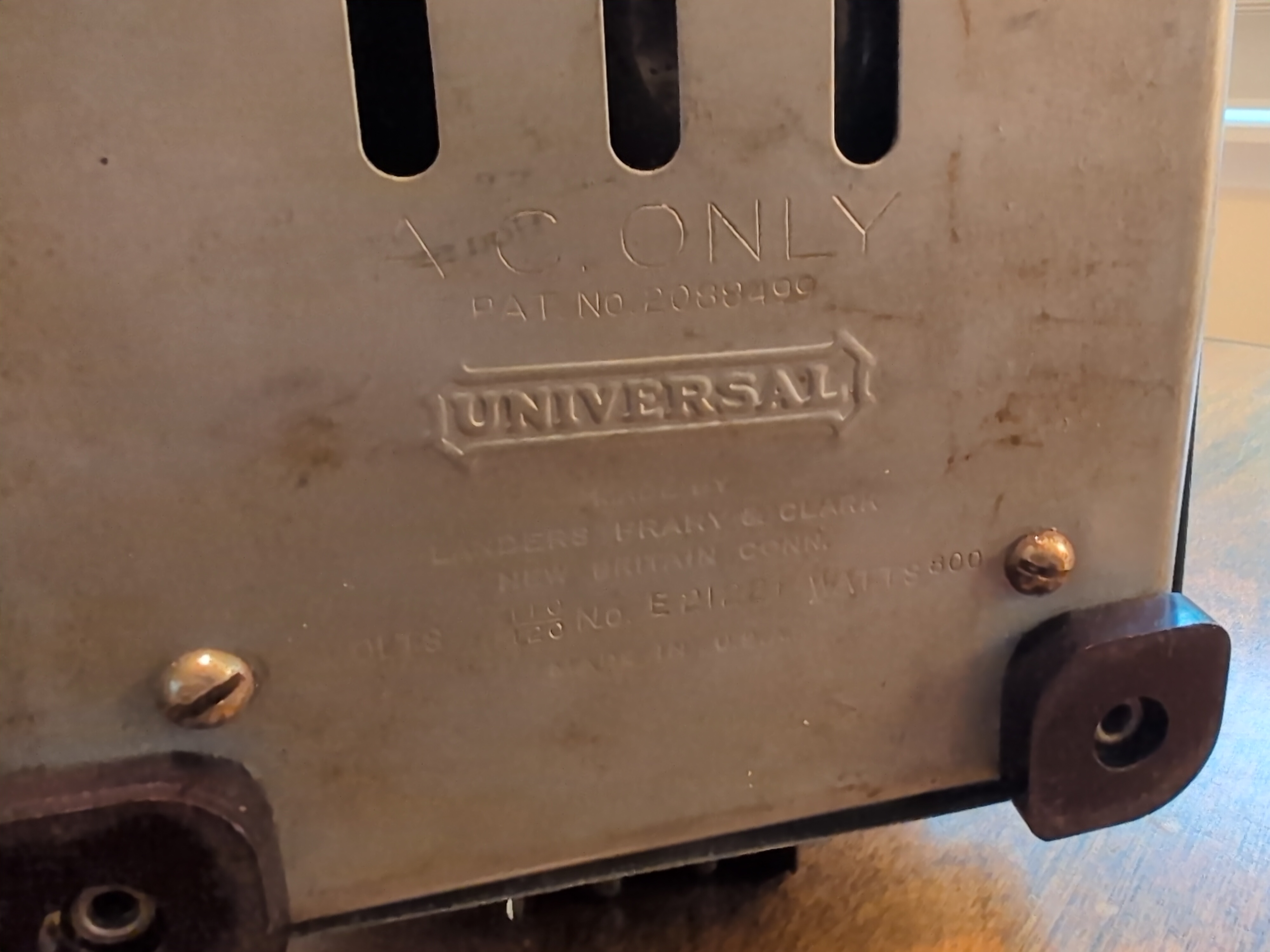 Universal E2122F Brand: Universal Landers Frary and Clark | Style: Flip out | Decade: 1920s | Year: 1920